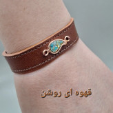 دستبند چرم طبیعی گاوی با رکاب مس و فیروزه طبیعی کد 02