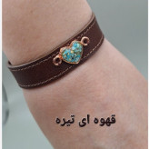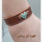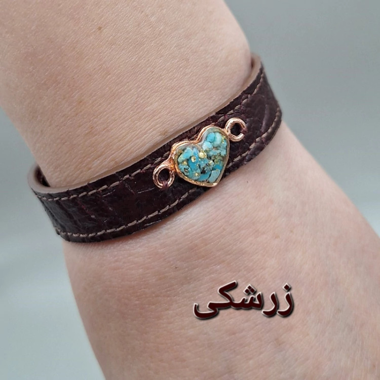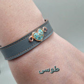 دستبند چرم طبیعی گاوی با رکاب مس و فیروزه طبیعی کد 01