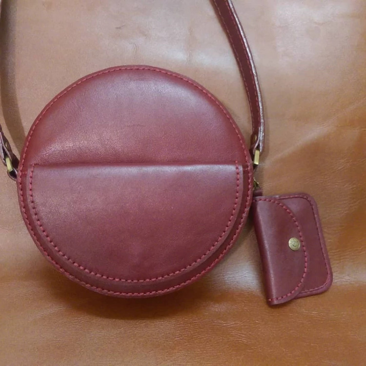 کیف گرد یا دایره ای چرم طبیعی دستدوز