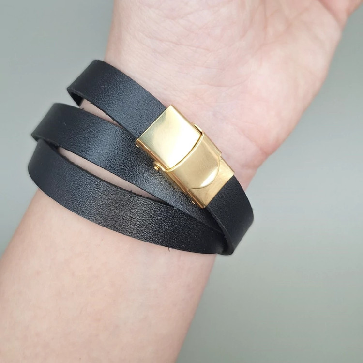 دستبند چرم طبیعی گاو با قفل رنگ ثابت