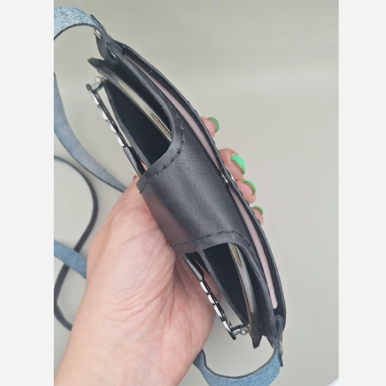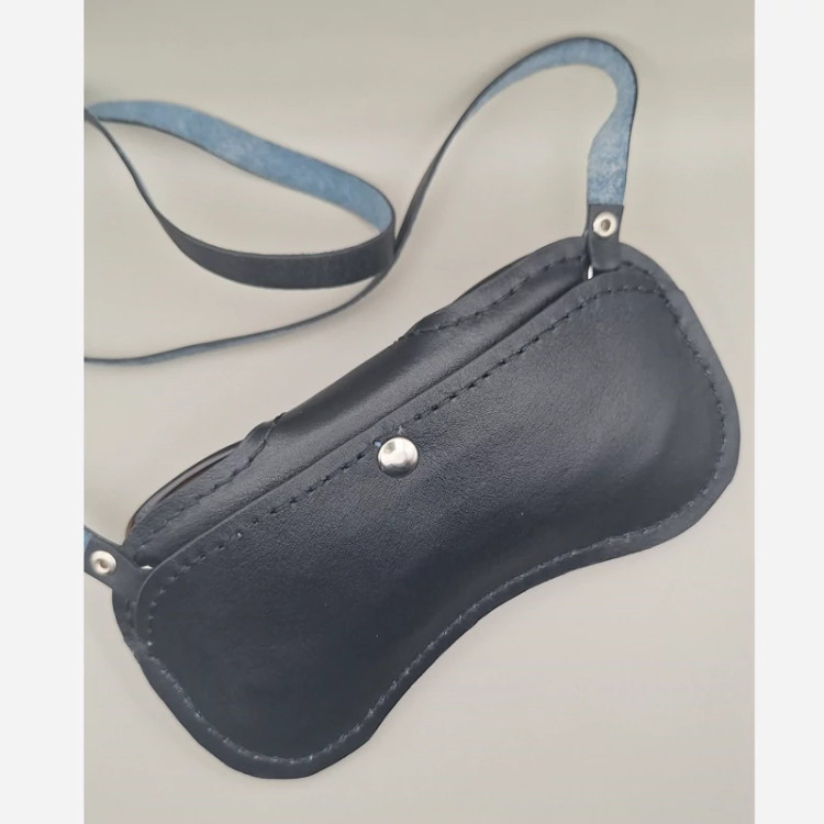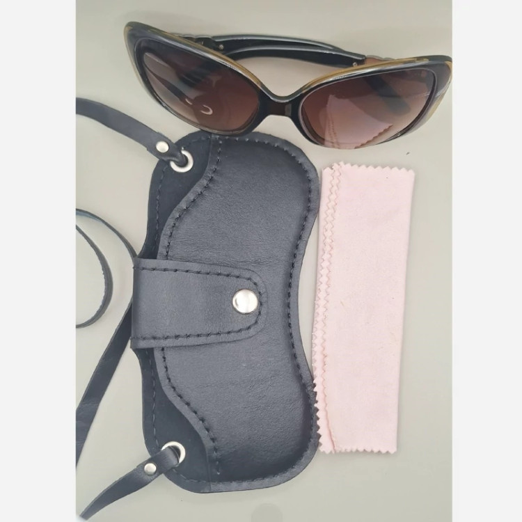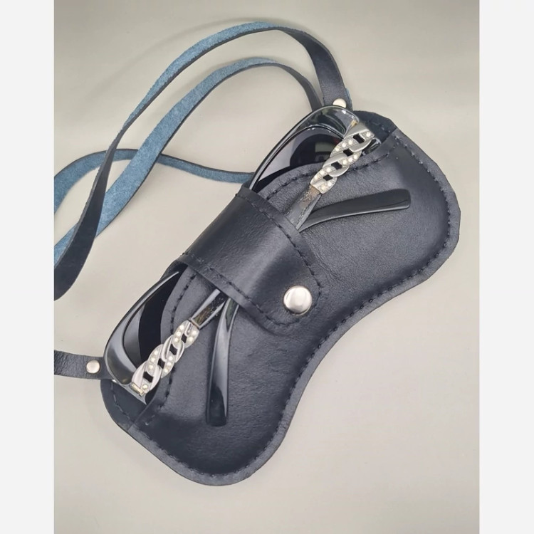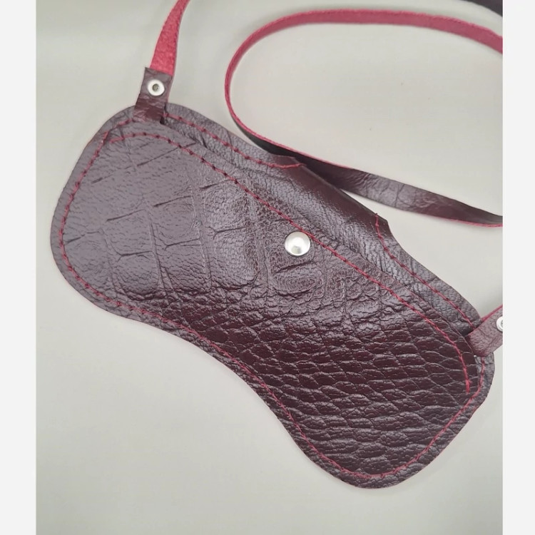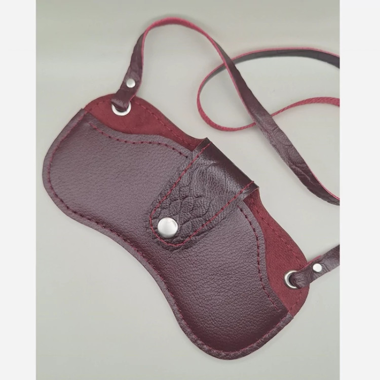 جاعینکی گردنی چرم طبیعی مدل جیب دکمه دار برای دستمال عینک