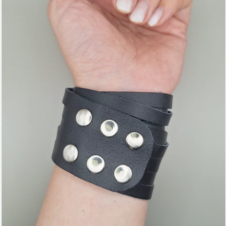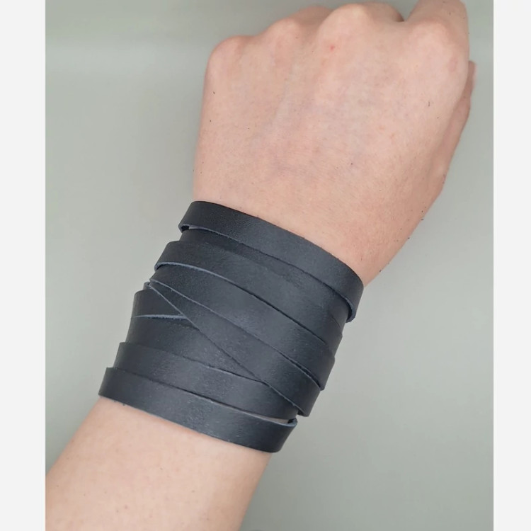 دستبندی از چرم طبیعی گاوی با کیفیت بالا، که دو دور کامل دور دست پیچیده میشه و جلوهای خاص و متفاوت به ظاهر شما میده.