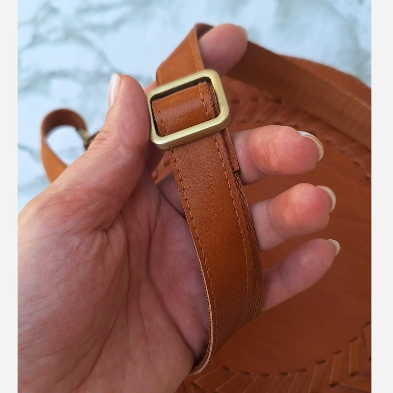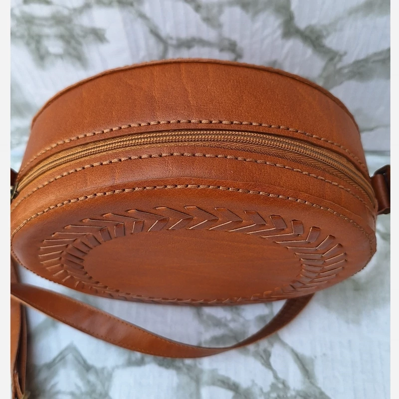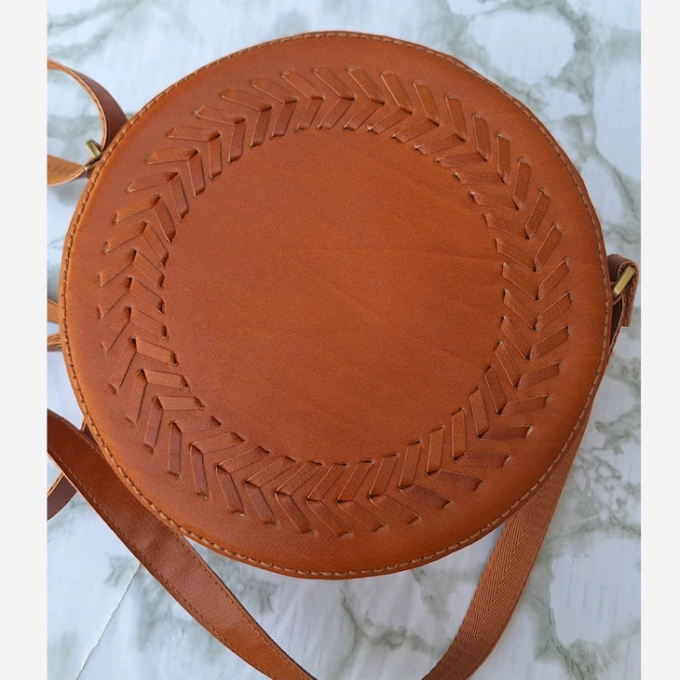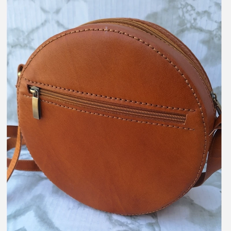 کیف گرد یا دایره ای دوخته شده با چرم طبیعی