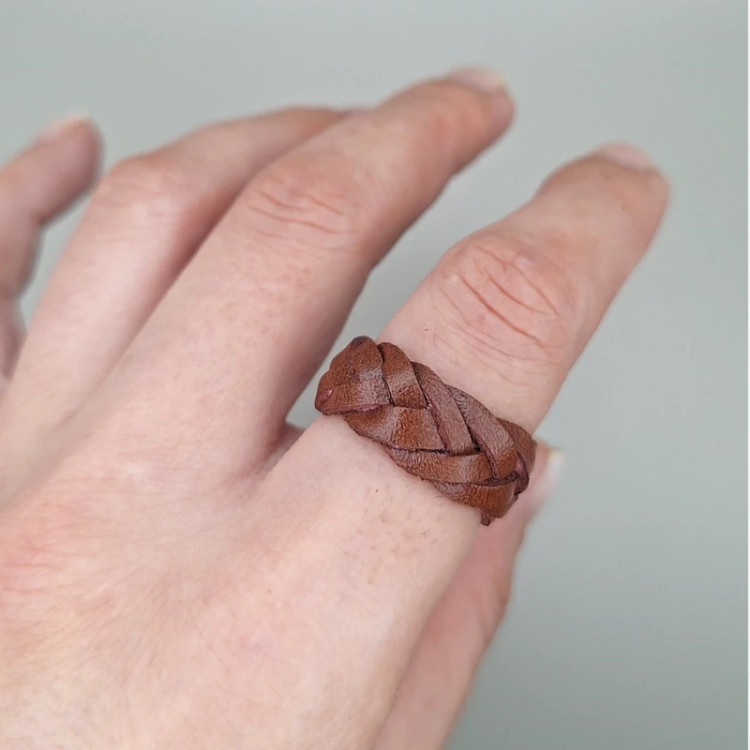 این انگشتر چرمی خاص، با استفاده از تکنیک بافت یکتکه (بدون برش مجزا) و از چرم طبیعی دستساز ساخته شده است.
