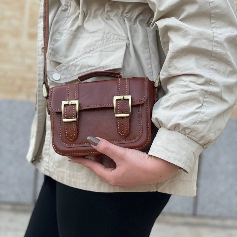 کیف دوشی چرم طبیعی دستدوز مدل مینی