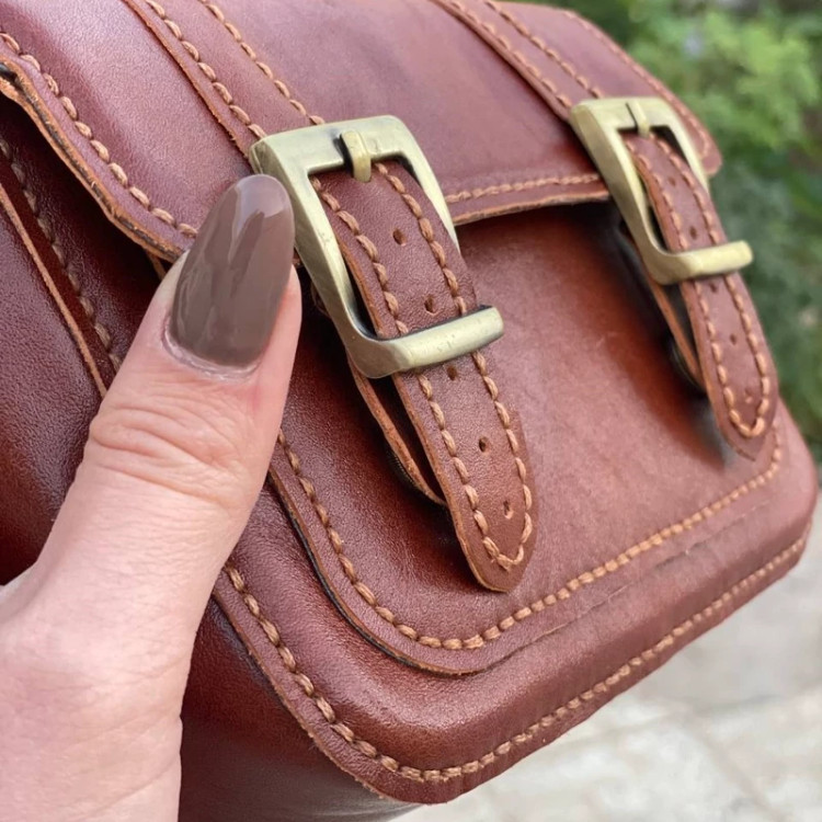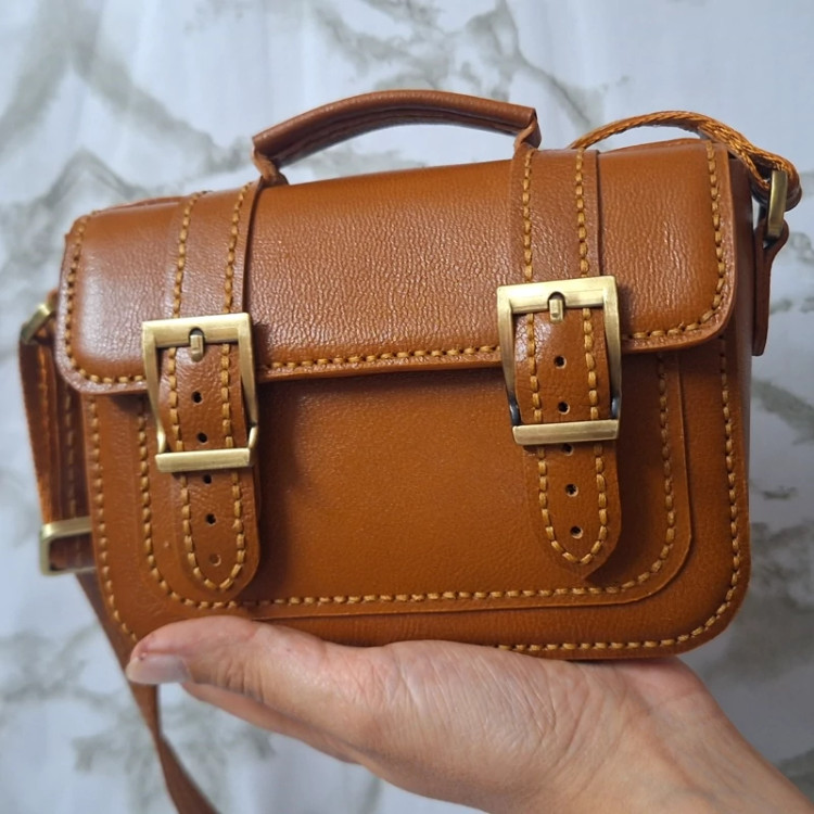 بند این کیف ترکیبی از چرم و برزنت هست و با چرخ دوخته میشود.