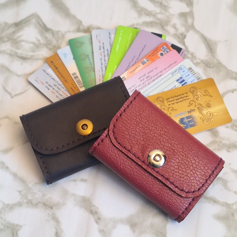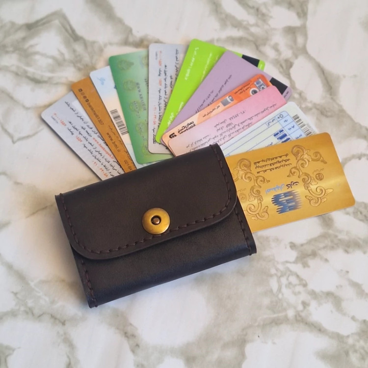 جاکارتی چرم طبیعی گاو مدل آکاردئونی دارای 10 جای کارت