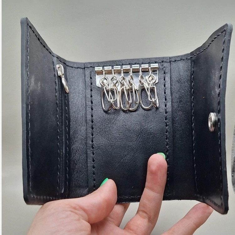 این کیف از چرم طبیعی گاوی ساخته شده و بهصورت کاملاً دستدوز تولید شده.