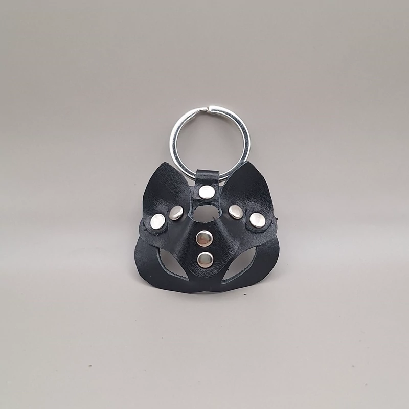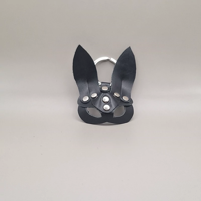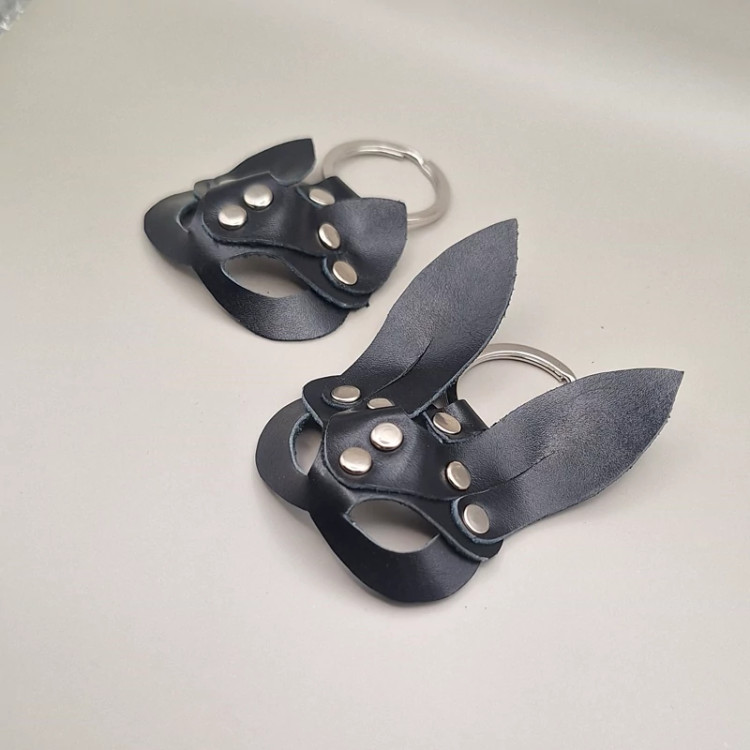 جاکلیدی چرمی دستساز از چرم طبیعی با طراحی فانتزی الهام گرفته از نقاب گربه و خرگوش
