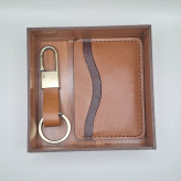ست کادویی جاکارتی و جاکلیدی چرم طبیعی بهمراه جعبه چوبی