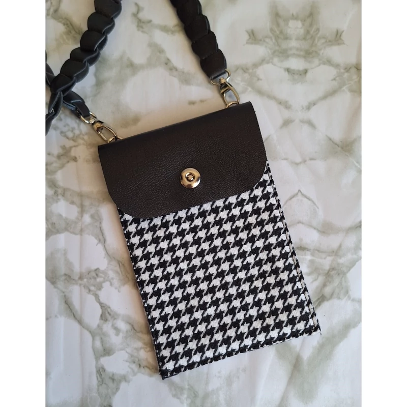 کیف دوشی کوچک ترکیب چرم طبیعی و پارچه پیچازی