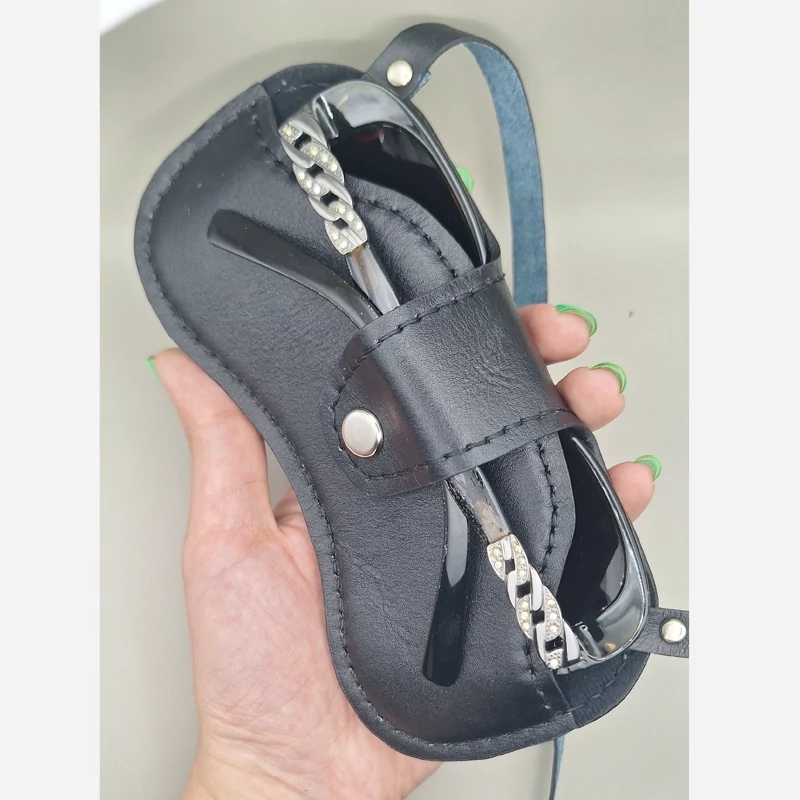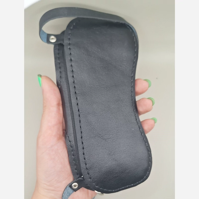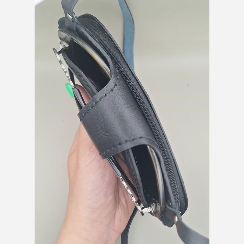 جاعینکی گردنی چرم طبیعی مدل جیب زیپ دار برای دستمال عینک