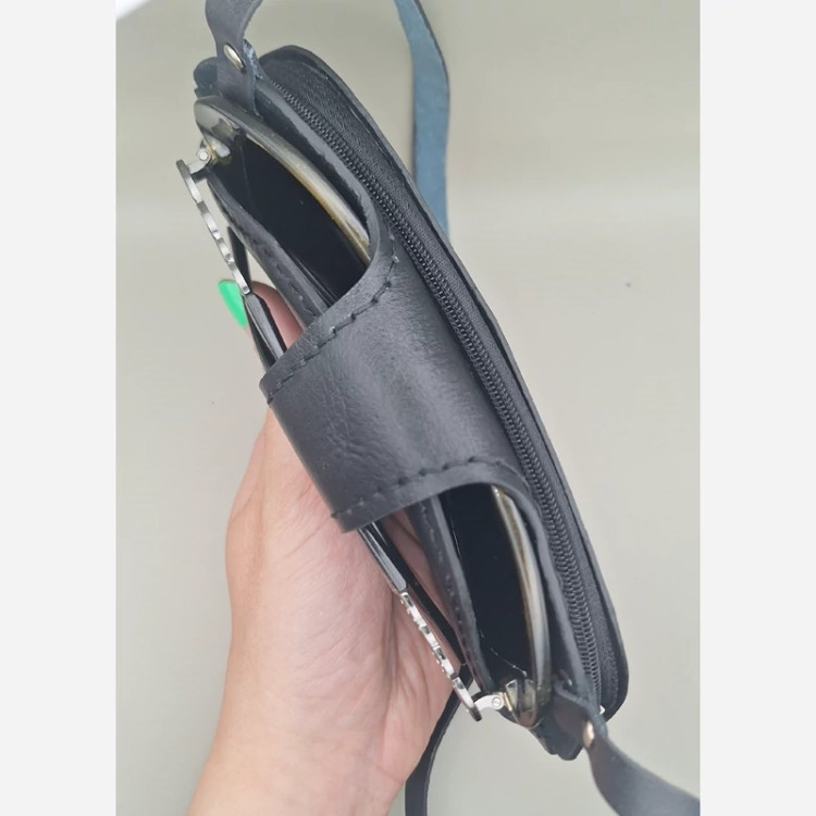 دارای یک جیب زیپ دار حجیم برای دستمال عینک یا خرده ریز