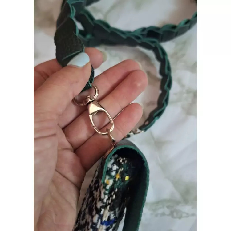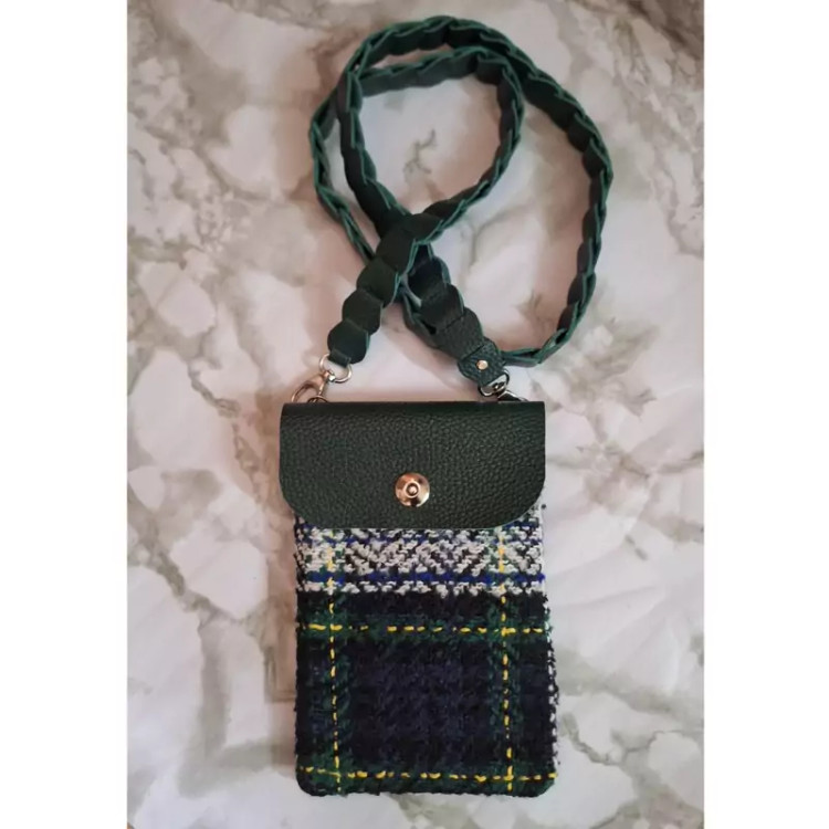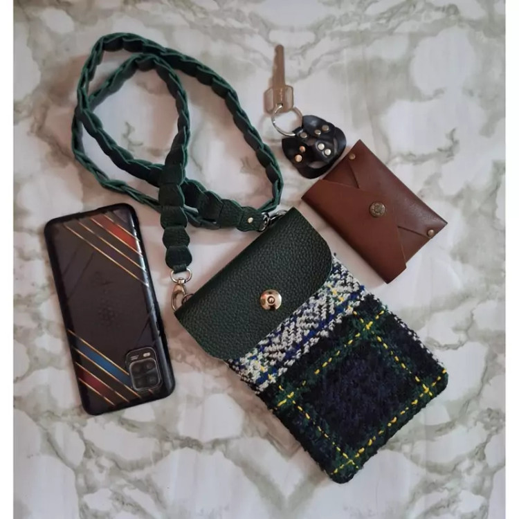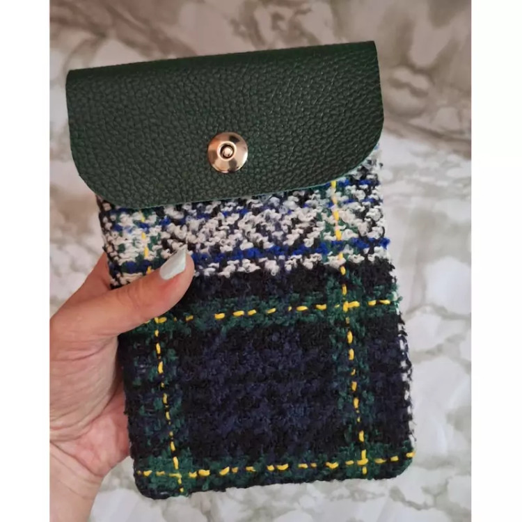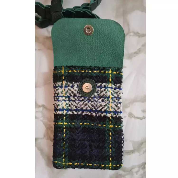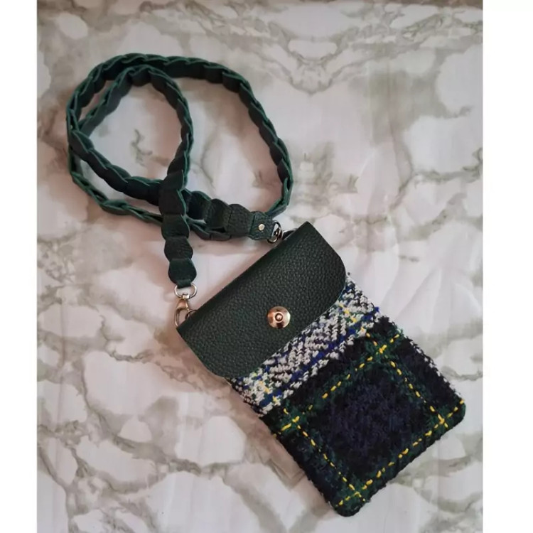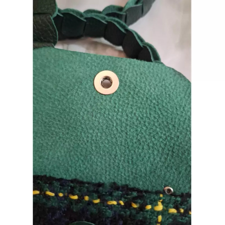 کیف دوشی کوچک ترکیب چرم طبیعی و پارچه پشمی