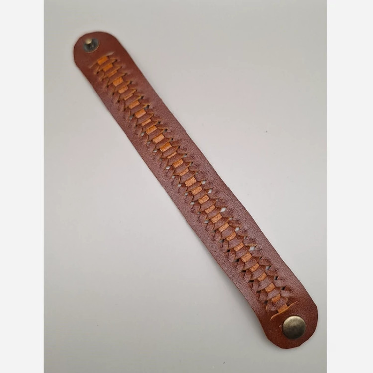 دستبند چرم طبیعی مدل بافت تک رنگ یا دورنگ دستساز