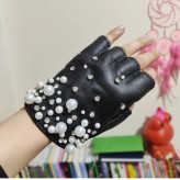 دستکش نیم انگشتی چرم طبیعی گوسفندی مدل مرواریدی