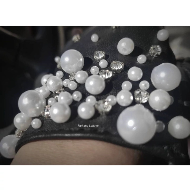 بعضی از مرواریدها و نگین ها دوخته و بعضی دیگر پانچ میشود.