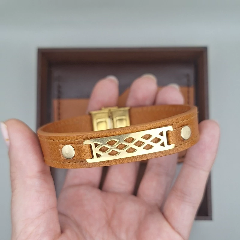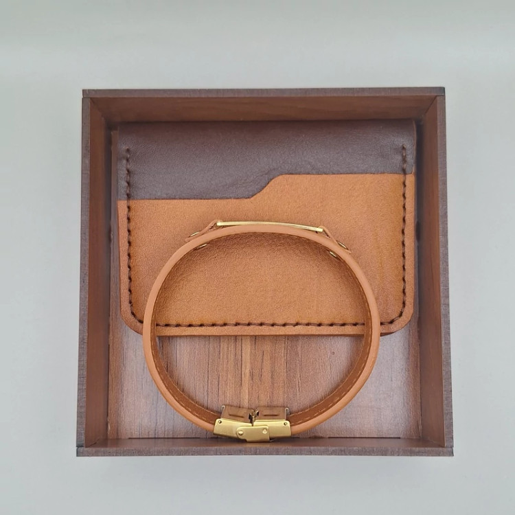 ست جاکارتی و دستبند چرم طبیعی گاو بهمراه جعبه چوبی